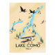 Belo lago Como Itália Mapeie impressão Poster de viagens do famoso lago italiano.