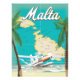 Malta Beach & map poster de viagens com um avião marítimo a aterrissar numa praia e um mapa da ilha.