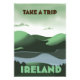 Poster de viagens do estilo "vintage" da Irlanda, com a bela paisagem.