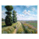"Meadow with Poplars" é uma pintura de paisagem tranquila. Esse trabalho captura um campo sereno com um aglomerado de árvores poplares altas que se erguem de forma destacada contra um pano de fundo de campos rolantes e um céu limpo. A pintura usa verduras vibrantes e blues macios para retratar a luxúria do campo e a filtragem de luz pelas folhas de polos. As árvores, com suas formas esbeltas e verticais, criam um sentido de profundidade e verticalidade em contraste com o campo expansivo e horizontal. A escova é solta e expressiva, transmitindo efetivamente a textura do capim e o jogo de luz através da paisagem. O humor geral da pintura é pacífico e idílico, refletindo a habilidade de capturar a beleza natural e a tranquilidade do ambiente rural. Essa pintura exemplifica a capacidade de retratar as sutilezas da luz e da cor em paisagens naturais.