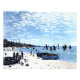 Na pintura cativante "Beach at Sainte-Adresse", espectadores são transportados para a pitoresca cidade costeira de Sainte-Adresse, perto de Le Havre, na Normandia, França. A cena se desdobra com uma visão panorâmica da praia arenosa, banhada à luz macia e ouro do sol. Contra o pano de fundo de uma vasta extensão de céu e mar, figuras caminham ao longo da costa, suas silhuetas pontuando o horizonte. As crianças brincam na areia, enquanto os barcos à vela pontilham as águas, suas velas ondulantes apanhando a brisa. O domínio da luz e da cor dos artistas está em cheio, enquanto ele captura as matizes sempre em movimento do mar e do céu. A água brilha com sombras azuis e verdes, enquanto as nuvens flutuam preguiçosamente acima, lançando sombras fugazes na praia abaixo. Por meio de suas corajosas pinceladas e de uma intensa observação da natureza, o artista infunde a cena com um sentido de energia e vitalidade, convidando os espectadores a mergulharem na beleza eterno da beira-mar. "Praia em Sainte-Adresse" é mais do que uma simples pintura — é uma janela para um mundo de sol, mar e areia, onde os prazeres simples da vida são comemorados em toda a sua glória.