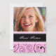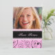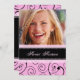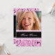 Foto personalizada 16º Convites de aniversário em um padrão elegante de espirais preto e rosa. Adicione seu nome, foto e detalhes da festa para um convite de aniversário 16 exclusivo e na moda doce.