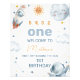 Primeiro Trip em torno do Sinal de Boas-vindas do primeiro aniversario Sol Espaço exterior doce ou primeira viagem ao redor do sol, primeiro sinal de boas-vindas de um bebê com sol, lua, estrelas, nave espacial e astronauta.