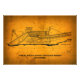 Esquema extremamente detalhado da seção longitudinal mostrando a linha de produção interna completa de um dragão de solha de extração Dourada de linha de Balde do Alasca. Essas dragas eficientes minavam toneladas e toneladas de ouro puro em todos os campos de ouro do Alasca durante o início do 20.
