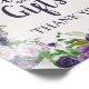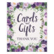 Add a refined and welcoming touch to your event with this elegant “Cards and Gifts” thank you sign. Designed with a lush watercolor floral border in shades of lavender, plum, and soft green, this sign brings a graceful garden-inspired aesthetic to weddings, bridal showers, birthdays, and special celebrations. The delicate florals frame a clean, easy-to-read layout featuring modern script and classic serif typography, ensuring guests can quickly find where to place their cards and gifts. Printed on photo paper, it’s perfect for display on a table, frame, or easel. Ideal for coordinating with floral-themed event décor, this sign adds both beauty and functionality to your celebration setup.