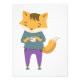 Raposa de cartoon em jeans a tomar uma xícara de chá