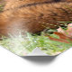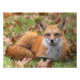 Uma bela raposa calmamente colega do seu lugar de repouso pastoso com folhas de outono caídas por toda a parte.