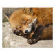 Raposa vermelha adorável tirando uma soneca numa rocha calcária de calcário.