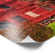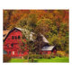 O brilhantismo de um dia ensolarado de outono é celebrado nesta bela impressão de fotografia de arte. Aqui está um celeiro de cremson em um vale no fundo de uma colina que é coberto com adoráveis cores de folhagem de vermelho, laranja, amarelo, ouro e verde. A fotografia foi aperfeiçoada para criar um efeito impressionista, artístico.
