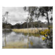 Mergulhe na beleza tranquila do arbusto australiano com esta paisagem evocativa. Capturada perto de Maryborough em Victoria, Austrália, esta imagem combina o realismo natural com detalhes pareados, destacando um momento de silêncio após a chuva com alguma coloração seletiva usada. O ouro brilhante floresce corajosamente no primeiro plano, a sua cor vívida contrasta com o humor, o céu lavado por cinzas e parcialmente submersos eucaliptos. As reflexões se espalham suavemente pela água, onde as sementes e troncos fantasmagóricos sobem através da planície, criando uma harmonia sonhadora de textura e tonalidade. Esta peça comemora o sutil drama da paisagem australiana — selvagem e gentil, resiliente e reflexiva. Ideal para amantes da natureza e coletores da australiana contemporânea, traz serenidade, profundidade e um toque de luz ouro para qualquer espaço.