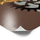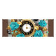 Relógio antigo e patenteado, adornado com joias, mãos de ouro e algarismos latinos com rosa de turquesa sobre fundo castanho e listrado. Estilo Steampunk.