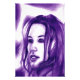 Arte original criada com lápis colorido. Feche o retrato de uma mulher, encarando com sabedoria algo à distância, feito em tons de roxo. O cabelo dela, normalmente vermelho, enrola seu rosto bonito. Este personagem deve ser a rainha de Vênus e provavelmente toca um piano perverso.