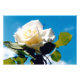 A rosa branca sob o céu azul. Foto vibrante de um belo rosa florescente faz um presente de arte floral em excelente. A beleza calma da rosa branca reflete novos começos, pureza, lealdade e inocência. As rosas brancas simbolizam o amor jovem que a noiva tem por sua esposa. As rosas brancas também simbolizam a fundação de uma relação, e é por isso que são frequentemente vistas num dia de casamento. A rosa branca é uma flor de casamento tradicional. A rosa branca é uma flor adequada para celebrar um novo vínculo romântico e marital.
