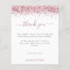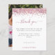 Foto Rosa Glitter Festa Hen Obrigado. Um alternativo de 4,5 pol x 5,6 pol com preço inferior. Disponível em um STOCK DE CARTÃO SEMI-GLOSS 110 lb, que é a opção padrão (mais espesso para convites), OU um STOCK de PAPEL THINNER FINISH 80 lb FINISH (ideal para gabinetes). Os envelopes são um extra opcional e são ligeiramente maiores que o tamanho da placa. Uma borda falsa de brilho em rosa bonito está no topo, e Obrigado está em um roteiro elegante. Personalize facilmente o texto para seus próprios detalhes. Na parte de trás troque sua foto favorita do seu partido de orientação para retratos.