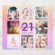Uma etiqueta para uma festa de aniversário de 21 anos, celebrando sua vida com uma colagem de 8 fotos suas. Personalize e adicione um nome, 21 anos e uma data. Data de nascimento ou data da festa. Letras coloridas de cinzas roxas e escuras. Fundo elegante e tenso arco-íris colorido em ouro roxo, violeta, rosa e rosa. O texto: Legal e Cheers escritos sobre as fotos como marcas d'água.