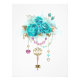 Chave de ouro antiga com rosas de turquesa de tendência, decoradas com folhas de ouro branco e miçangas cor-de-rosa e azuis. Cor agradável. Rosas de turquesa. Ouro branco. Tifania azul.