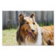 "Rough Casaco Tricolor Collie Dog", por Catherine Sherman. Este Collie revestido por película apresenta um casaco tricolor, que é marrom (estável), preto e branco. A Collie é uma das raças de cães mais conhecidas e amadas do mundo. Por causa de um cachorro famoso em uma série de televisão, a maioria das pessoas está familiarizada com o Collie esnobado com sua magnífica casaco de cabelos longos, mas há também um collie liso elegante. O Collie é um grande pastor ágil com cabeça em forma de cunha e é conhecido por ser bom com crianças.