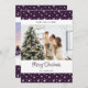 Anuncie seu novo endereço com nossos cartões de natal de fotos roxas personalizados com um belo título e estrelas manchadas. Personalize facilmente esta nova casa de fotos roxas estreladas para os cartões de feriados com as suas imagens, endereço e nome de família.