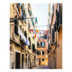 Pintura de beco estreito com secagem da roupa no terreiro entre paredes altas, Veneza, Itália. Bandeira americana. Rua estreita com prédios coloridos em Veneza e roupas secas em uma corda.