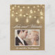 Foto Rustic Burlap Mason Jar Obrigado Cartões postais - personalize para uma foto sua. Design apresenta um fundo de braçadeira rústica do país com luzes de cordas e frascos de mason acesos.