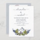 Berries Russos do Exterior do Orçamento Montanha e Vergonha Aquarela Molha Molha Casamento Dusty Blue e Verde Elegante e Moderno Foto ou Convites Imaginários em Branco - inclui uma bela e elegante tipografia com folhas botânicas modernas e verde para a celebração especial do Dia do Casamento.