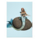 Renderização digital 3D de uma bela e triste sereia sentada sobre um fundo azul