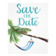 Save The Date Tropical Paradise - Apresentando uma rede de hammock listrada na vintage pendurada num Noivado de casamento/palmeira ou na arte de poster de celebração geral.