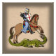 Embora muitas vezes retratado como um cavaleiro medieval, o Santo George era um tribunal militar do início do século IV, no final do terceiro trimestre (cerca de 303 mártires). De acordo com a lenda, George matou heroicamente um dragão que estava aterrorizando o campo ao redor de Silena na Líbia. Este retrato particular do santo guerreiro de Richard H. Fay o retrata armado como um cavaleiro medieval do século 13.