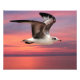 Belo voo para os pôrs do sol com cores respiratórias que a gaivota pega voos por verão tarde da noite, se o sol nunca se pôr todo o caminho