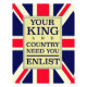 Seu Rei e País precisam de você. Poster de propaganda da Guerra Mundial com uma bandeira do reino unido.