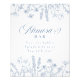 Melhore seu chá de panela com nosso sinal de Bar Boho Periwinkle Wildflower Mimosa. Apresentando delicadas ilustrações de flor silvestre em azul macio e azuis e um design chic boho, este sinal adiciona um toque caprichoso, mas elegante, à sua configuração de bar mimosa. Perfeito para comemorações de jardim ou de temas rústicos, convida convidados a se misturar e beber estilo. Personalize com seus detalhes de evento um toque personalizado que complementa sua decoração. Uma alegre adição à sua comemoração que dá o tom para uma reunião divertida e festiva!