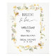 Floral Yellow Bee Chá de panela Sinal de boas-vindas Flores silvestres amarelas e Sinal de boas-vindas ao chá de panela das abelhas apresentando duas abelhas, estrutura ondulada e principalmente arranjo de flor silvestre amarela. Esta noiva de chá de panela também apresenta uma palavra caligráfica moderna não editável.
