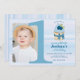 Um doce cupcake de mirtilo e um convite de aniversário de fotos de aquarela para comemorar esta ocasião muito especial, seu garotinho está virando um!