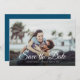 Esta foto moderna de script salve o cartão de data com sua foto especial sobreposta com um script, salve a data acima de seus nomes, data e local em texto branco. O inverso tem detalhes adicionais sobre a data, incluindo o site do seu casamento. Você pode personalizar o fundo para sua cor favorita. Projetado por Thisnotme©