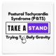 Esta síndrome da taquicardia ortostática (POTES) postural TOMA UMA POSIÇÃO - Tentar Desfazer a design de poster de Gravidade chama a atenção para aqueles que sofrem os efeitos maléficos dos POTES e a urgência de encontrar uma cura para aliviar seu sofrimento.