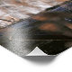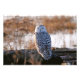 Foto de uma coruja de neve piscando. A coruja está sentada sobre um pedaço de madeira derivada na praia cercada por vegetação seca. Esta imagem de coruja pode ser personalizada com o seu próprio texto no estilo de texto da sua escolha.