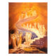 pintura do pintor inglês, poeta, e famoso artista inglês da era romântica, william blake ilustrando o sonho de jacob e pintado em cores e castanhos ouros. jacob no fundo da foto dormindo, acima dele aparece uma escada circular que leva para cima e diminui na distância, anjos com asas e longos vestidos correndo graciosamente caminhando sobre o tosco da escada um céu ouro com estrelas. uma obra de arte agradável e decorativa do lago que representa a escada celestial é uma elegante aquarela em dourados brilhantes e laranja.
