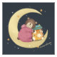 Uma ilustração fofa de um urso dormindo em pijama com um pote de mel na lua