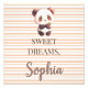 Traga um senso de calma e charme para o espaço do seu pequeno com esta estampa personalizada de panda tudo-em-um. Este design apresenta um panda fofo, colocado contra um fundo moderno de listras suaves em tons de pêssego e branco.