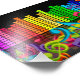 notas de música coloridas equalizadores sons legal brilhante na moda moda músico entretendo imagem de arte design impressão efeitos retrógrados modernos cor de laranja vermelho vermelho cor de laranja vermelho cor de rosa