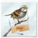 Gemido de garganta branca (Zonotrichia albicollis) na neve. Pequeno conselho de madeira. Personalizar nome. Ideal para doação de presente.