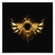 Shiny mechanical wings, with gears and brass round banner. Steampunk