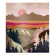 Uma paisagem abstrato com cores e texturas únicas mostrando uma paisagem natural com sol ascensão e dois gansos em tons de laranja, bege, marrom e rosa.