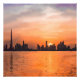 Uma bela pintura aquosa de uma cidade ao pôr do sol com um céu multicolorido, a cidade fica à beira-mar e há reflexões sobre a água. Pintado por Fantabuloustef - 2023