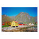 Cena costeira com montanhas e casas coloridas de madeira em Svolvaer, Ilhas Lofoten, Noruega