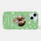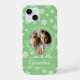 Vestir seu telefone com este cobrir de capas de iphone de renas de personagem de desenho animado giro com o texto "Feliz Natal" na tipografia elegante de script branco personalizada com sua própria foto. "Feliz Natal" pode ser mudado. Adicione seu nome de família ou seu próprio texto. Cartoon rendeer personagem com nariz brilhante vermelho sobre fundo verde-teal com flocos de neve brancos, tipografia com script branco e foto personalizada. Presente perfeito para vovó, mãe ou qualquer um. Se precisar de ajuda para personalizá-la, envie-me um e-mail e eu gostaria de ajudar. designsbykatz@gmail.com Feliz Férias!
