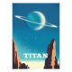 Titan e o planeta aninhado Saturn Vintage Estilo Arte Espacial.