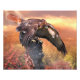 Um falcão de cauda vermelha toca num toco de árvore queimado cercado por uma floresta tão colorida quanto o pôr do sol.