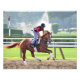 Este cavalo estava respirando no dia de abertura em Saratoga com um cavaleiro de exercícios. Sinta o poder e o entusiasmo nesta emocionante fotografia de cavalo e cavaleiro. Este colt de castanha tem uma semelhança impressionante com seu establho e Cavalo do Ano "Wise Dan" Forego