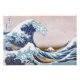 "A Grande Onda de Kanagawa", também conhecida como "Sob a Onda de Kanagawa", é uma cativante xilogravura do renomado artista japonês Katsushika Hokusai. Criada por volta de 1831, faz parte de uma série intitulada "Trinta e Seis Vistas do Monte Fuji". A obra de arte retrata uma cena de imensa força e beleza contrastante. Uma onda colossal, com crista espumante e curvada para dentro, ameaça engolir três pequenos barcos em um mar agitado. Ao fundo, o Monte Fuji, um símbolo icônico do Japão, permanece calmo e majestoso, diminuído pela imensidão da onda. --- A maestria de Hokusai na composição é evidente na maneira como ele usa a perspectiva. A onda toma o centro do palco, com sua forma dinâmica preenchendo o primeiro plano. As cristas brancas em cascata e a água
